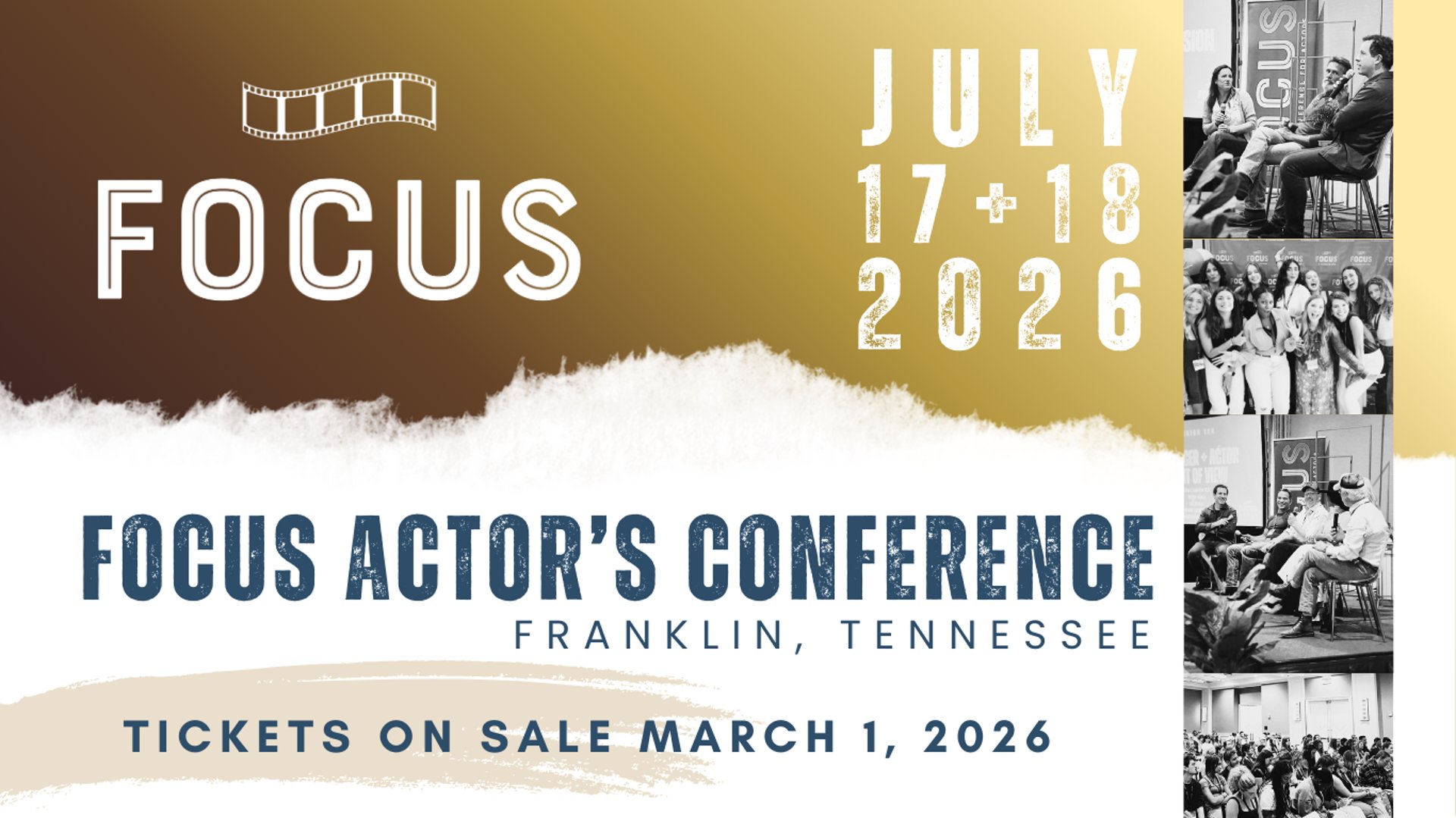 Please note that information entered into this form will not be sold to a third-party and will only be used for marketing activities related to Focus: The Conference for Actors. By clicking submit, you consent to receiving email messages related to Focus: The Conference for Actors.